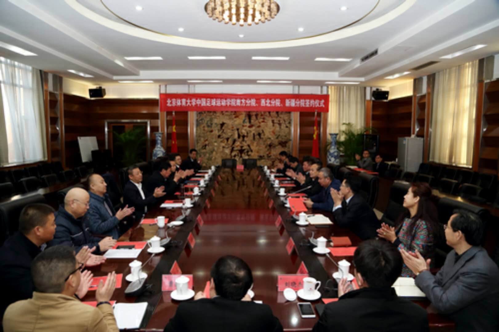 12月25日上午,28365365bet中国足球运动学院南方分院、西北分院、新疆分院建设协议签订仪式在京举行。新疆维吾尔自治区体育局党组书记聂春,新疆维吾尔自治区体育局副局长韩建国,甘肃省体育局局长杨卫,海南省文化广电出版体育厅副厅长曹远新,28365365bet党委书记曹卫东,28365365bet党委副书记、校长池建,28365365bet副校长陈立人,国奥控股集团股份有限公司总裁助理刘晓杰出席签约仪式。海南省文化广电出版体育厅、甘肃省体育局、新疆维吾尔自治区体育局以及28365365bet相关部门负责人等参加仪式。